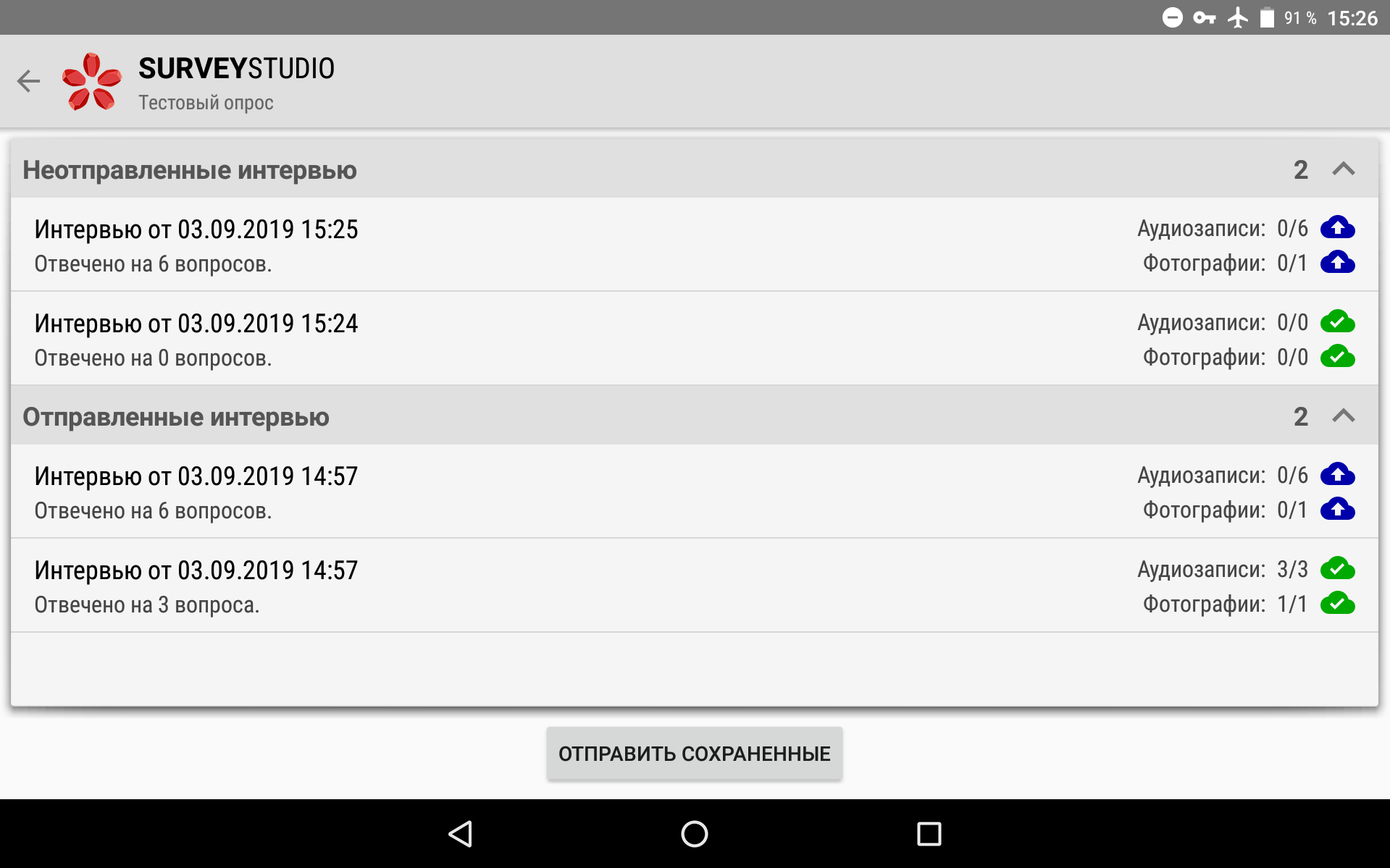Если собранные данные для вас важны – отправьте их. Когда сбор данных в проект будет закрыт менеджером, ваша информация не отправится. Кроме того, были случаи удаления неотправленных анкет интервьюерами, которые использовали планшеты своих коллег.