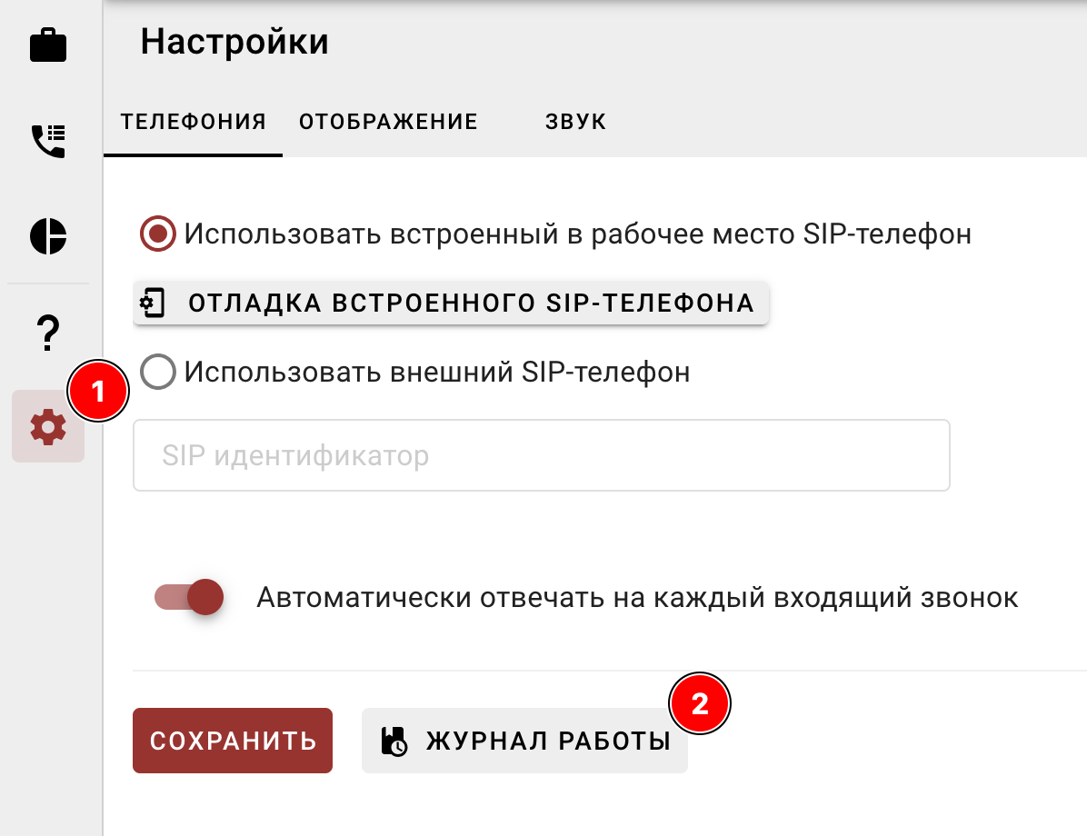 На боковой панели нажмите кнопку с изображением шестерёнки, а затем Журнал работы:
